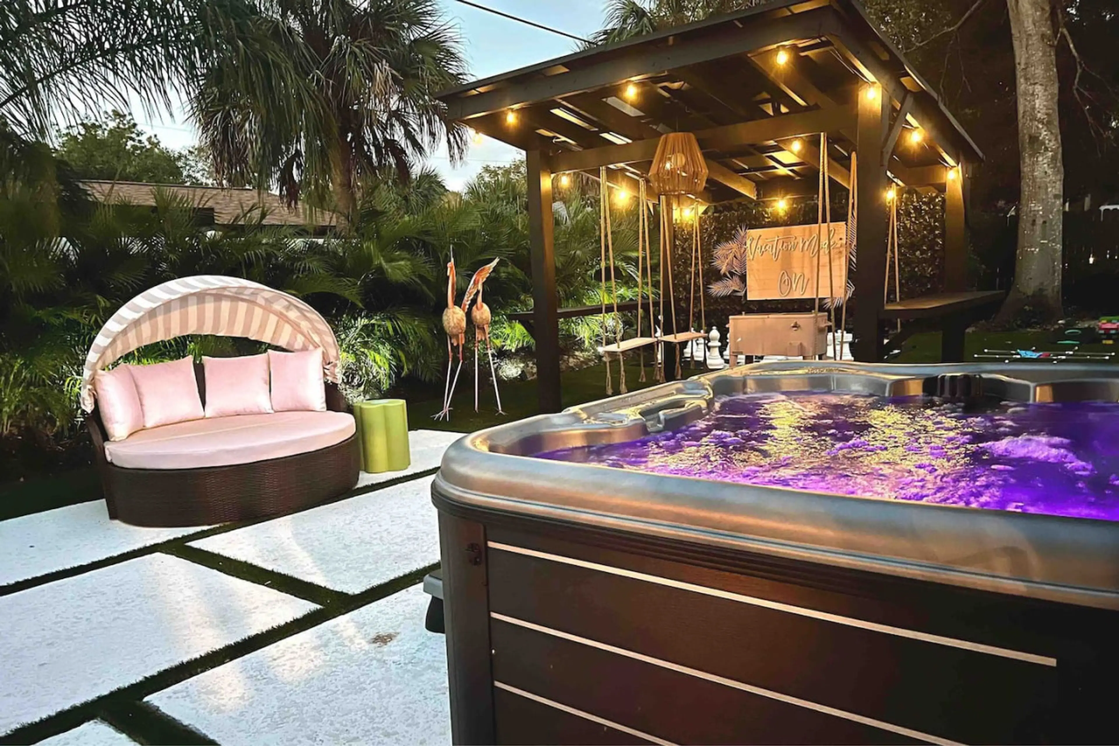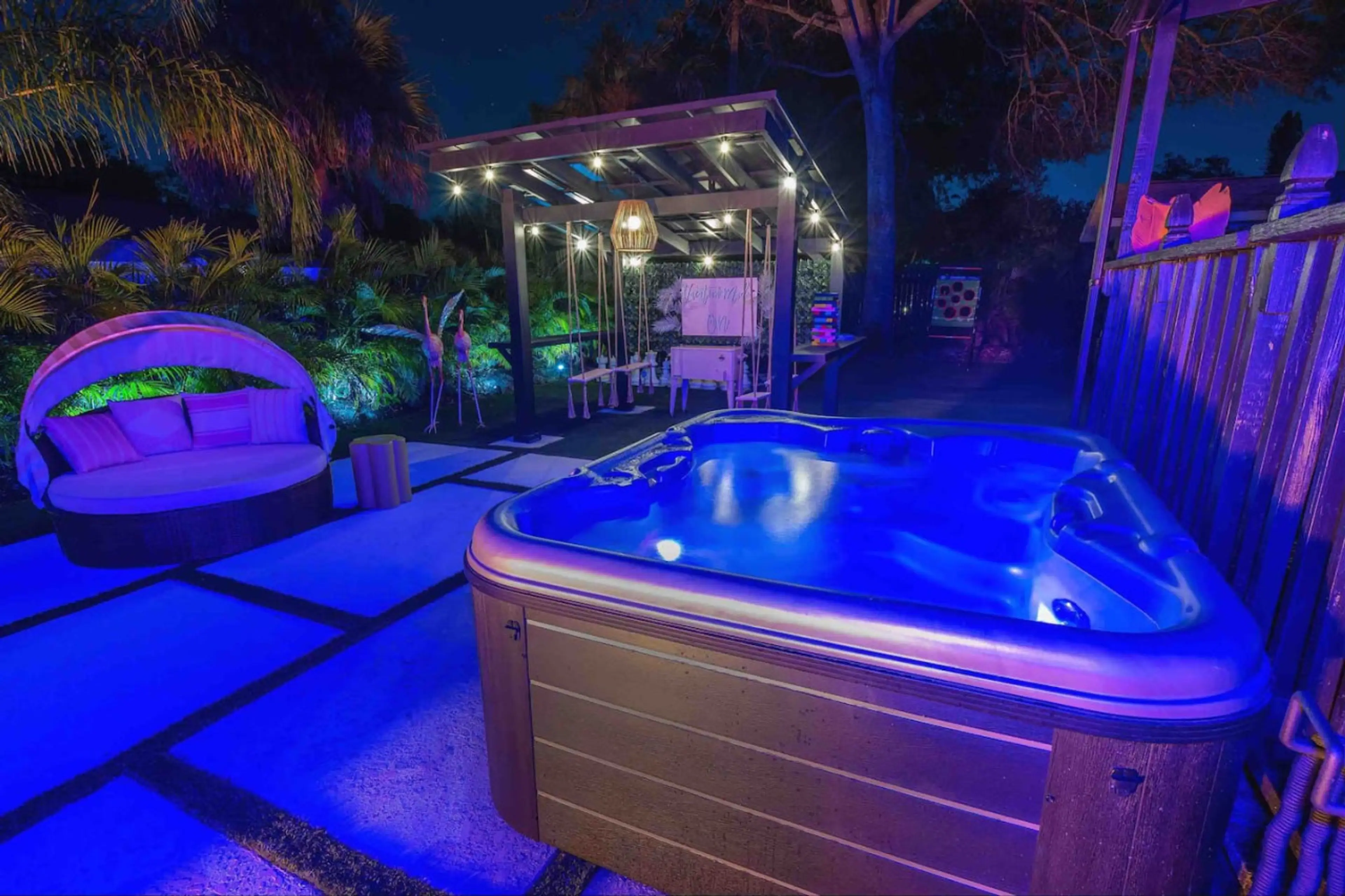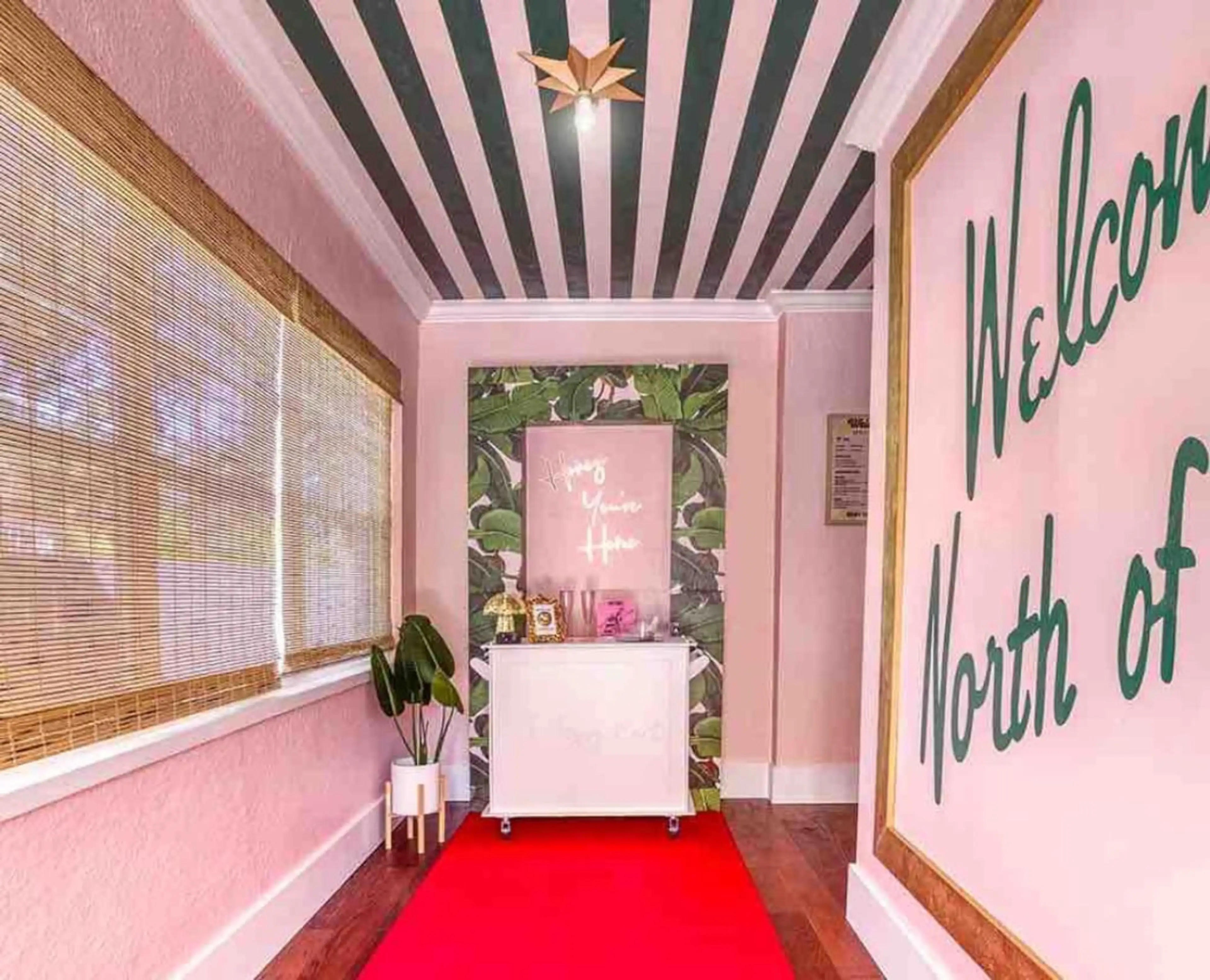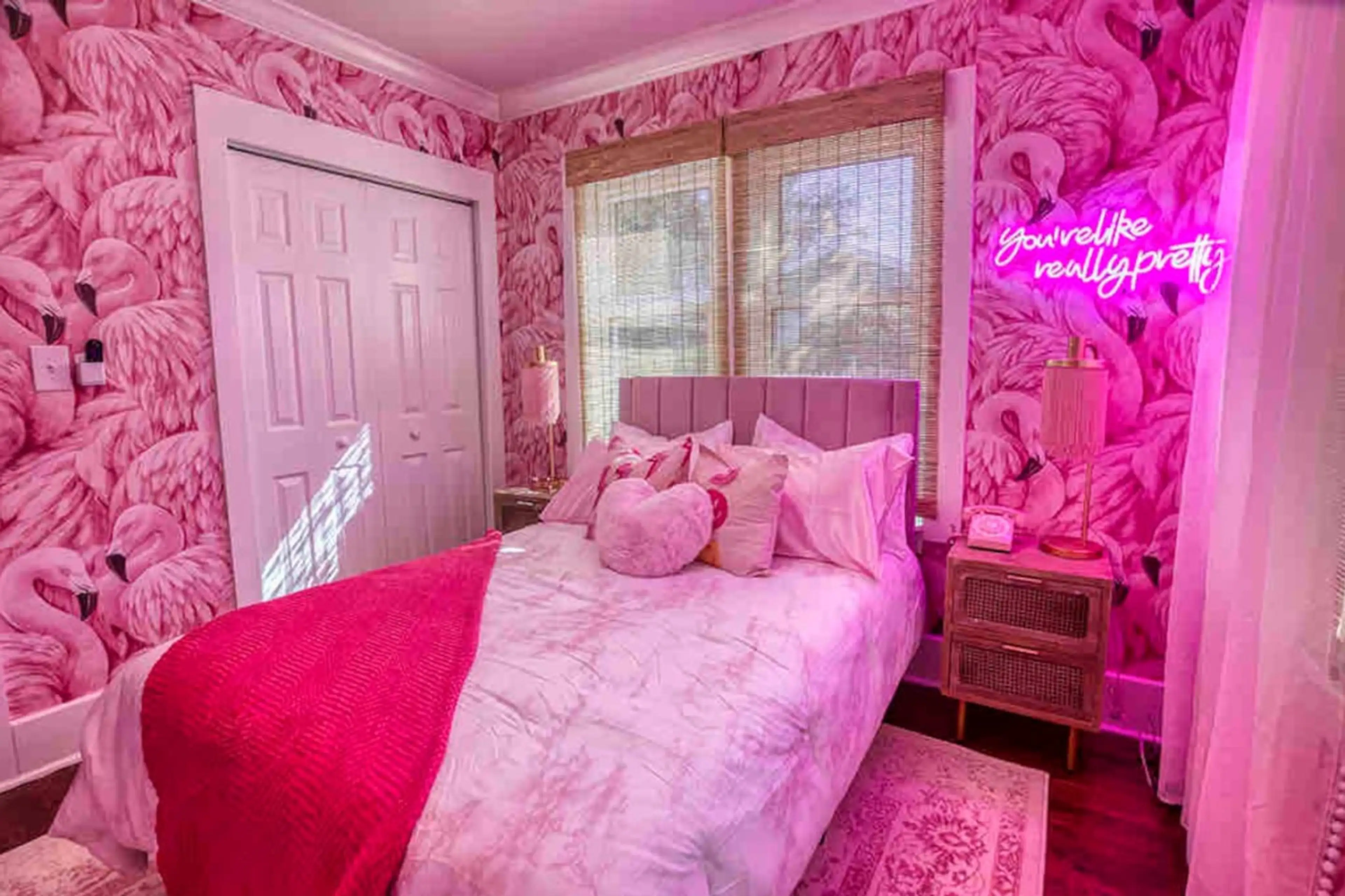 Dive into the curious home of Tipsy Flamingo. The tropical fever dream you didn’t know you needed! Stay in a historic home bursting with fluorescent colors, a pink-tastic Flamingo Suite, a wild Jungle Room, and a chill coastal Surf Den. Outside, swing under the pergola, battle it out in giant ches...